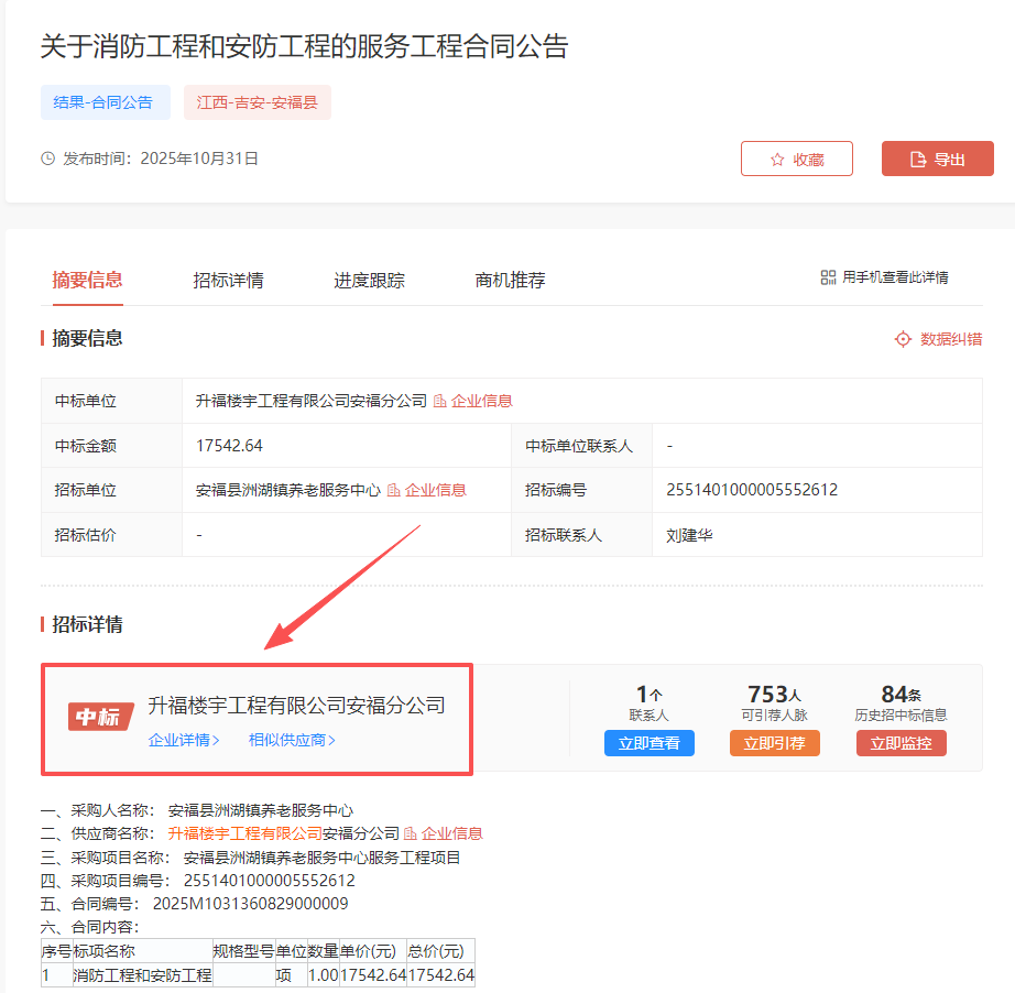 2025年10月31日,升福楼宇工程有限公司安福分公司成功中标
